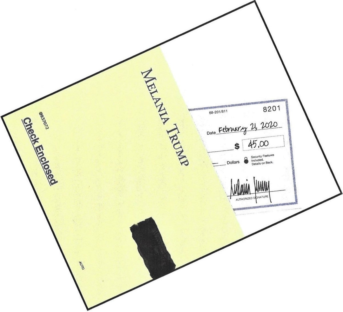So there I was, basking in the glow of Melania’s personal attention, picking up the check again to admire her other authentic Trump-style Sharpie signature, when…