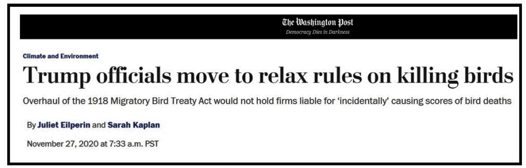 “over objections from former federal officials and many scientists that billions more birds will likely perish as a result…”