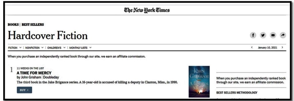 The book-reading public that, for awhile, put John Grisham’s latest, A Time for Mercy, at #1 on the New York Times’ best seller list: