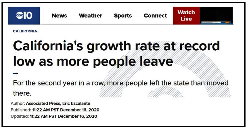 “For the second year in a row, more people left California than moved there. The result was a net migration loss of 135,600 people.”