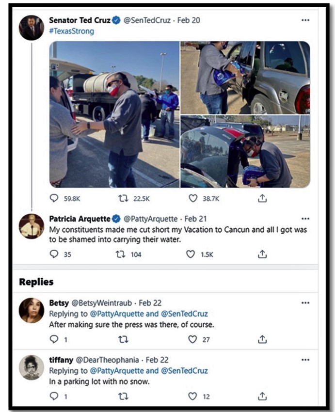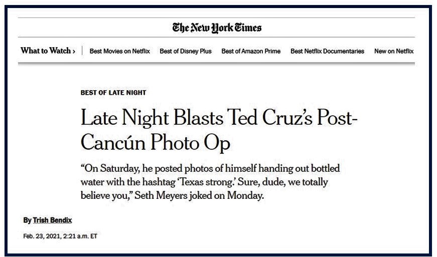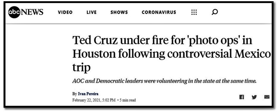 Cruz then utilized a phony photo op to demonstrate that in addition to being a good dad, he was a good guy, handing out water to suffering Texans: