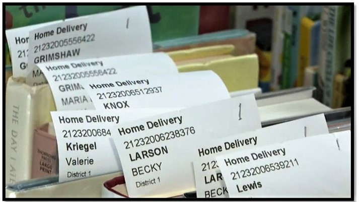 “Then, two or three of us deliver to 25 to 55 households each, often with multiple bags or boxes for a single household, while back at the library, two or three of us pull more on-hold items from as many as 19 double-sided pages for the next day’s deliveries.”