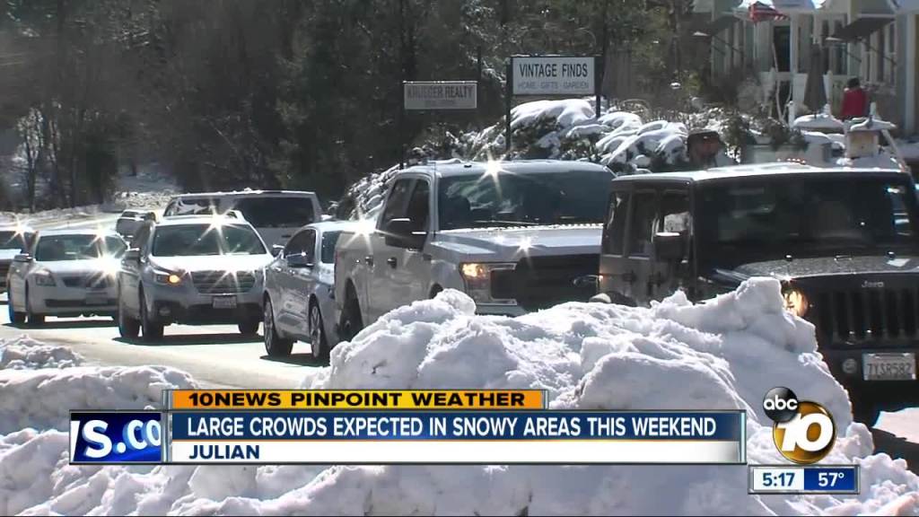 So it may surprise you to know that we do get snow here – at the higher elevations – on Mt. Laguna, Palomar Mountain and so on. The weather forecasters on the local news actually get excited when the snow levels drop from 5,000 feet to 3,000 feet and lower:
