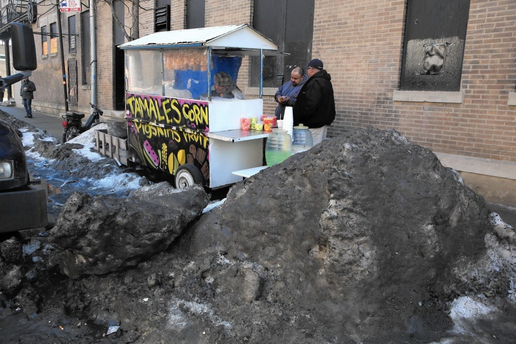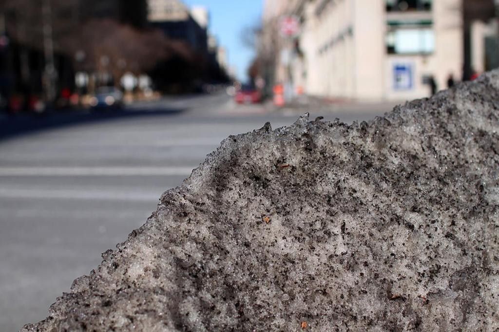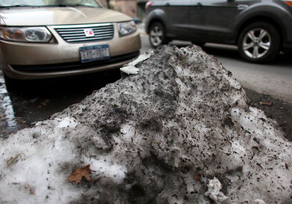 When spring finally arrives and the ground starts showing signs of coming back to life, the snirt piles remain, adorning yards and parking lots with this: