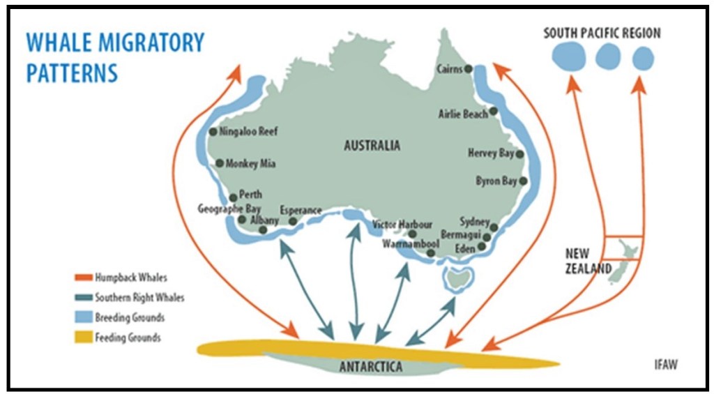 Each January, around 60,000 humpback whales leave the frigid, food-rich waters of Antarctica and begin the world’s longest mammal migration, a 5,000 kilometre (3,000+ mile), three-month journey to the warm waters of northern Australia where they mate, calve and nurture their newborns: