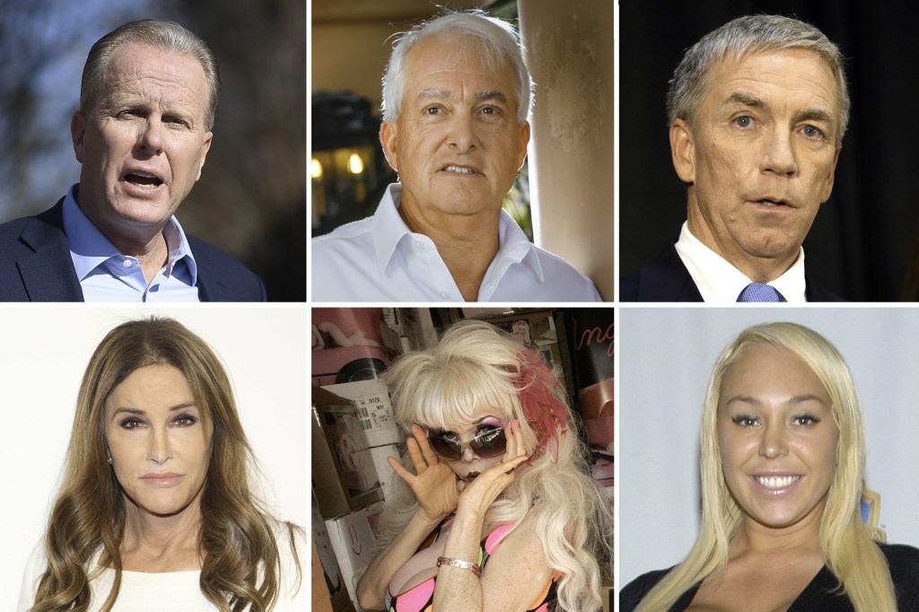At present the Republican recall candidates include Mary Ellen Cook, a former pornographic film actress; Angelyne, a former Los Angeles billboard model; Kevin Faulconer, a former San Diego mayor; Doug Ose, a former California congressman; Caitlyn Jenner, a former male Olympic gold medalist and reality show celebrity, now a transgender activist…
