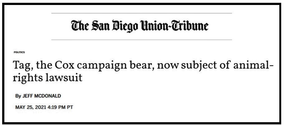 APRL has filed a lawsuit asking a judge to order Cox to immediately suspend any further public appearances with the animal through the duration of the campaign to recall Governor Newsom.