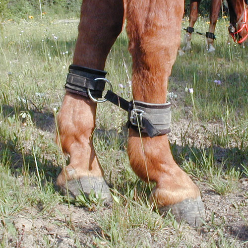“A device which prevents or limits the locomotion of an animal, by tethering one or more legs. Although hobbles are most commonly used on horses, they are also sometimes used on other animals.”