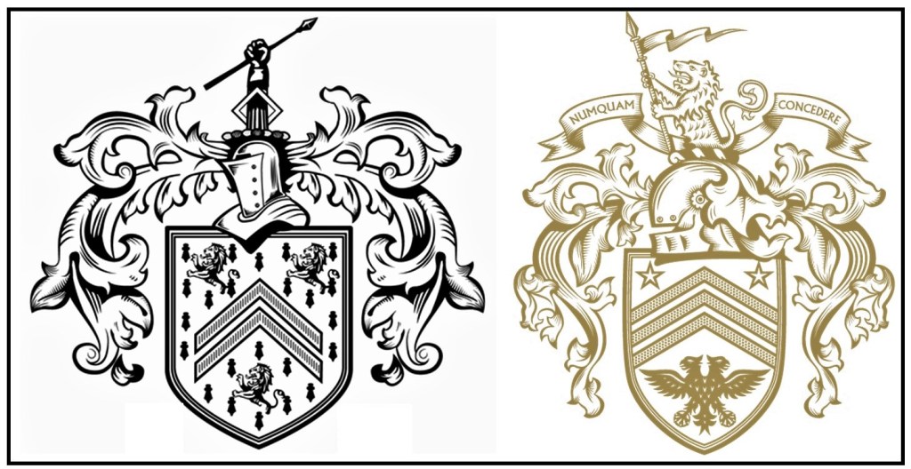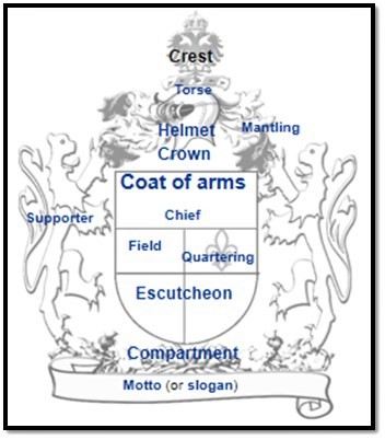 In my research I encountered articles that referred to these images as a “coat of arms.” Other articles refer to the images as a “family crest.”