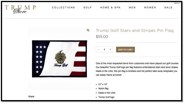 The emblem is used at Trump’s golf courses across the U.S. At the Trump National Golf Club outside Washington, it’s everywhere – the pro shop, the exercise room, the sign out front: