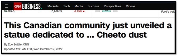 “The Cheetos brand, rooted in mischievous fun, was on the lookout for the perfect home for its statue until it came across a hamlet in Alberta with a kindred name, Cheadle. (What could be more perfect?)”