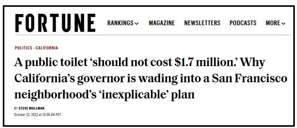 (I particularly liked how the Daily Mail’s multi-purpose headline addressed both the $1.7M toilet issue and California Governor Gavin Newsom’s presidential ambitions.)