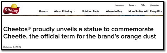 Frito Lay was proudly unveiling a “statue to commemorate Cheetle, the official term for the brand’s orange dust”: