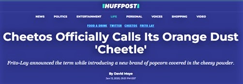 “…‘Cheetle’ is by no means a new term. A Frito-Lay rep told HuffPost the company trademarked the term with that particular spelling 10 years ago.