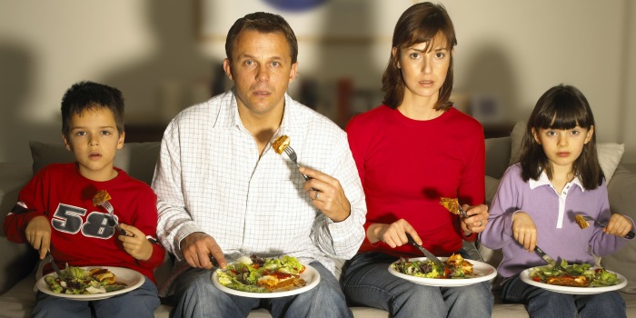 Now here’s Family #3 having dinner, everyone eating, but this time sharing the same device – the television: