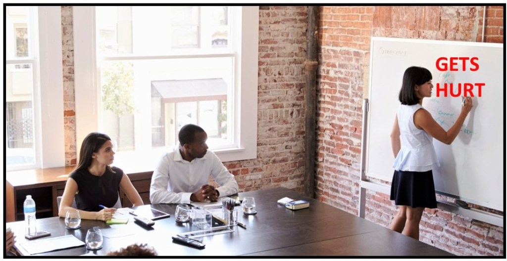 (Team Leader smiles, and notes GETS HURT on the white board.)